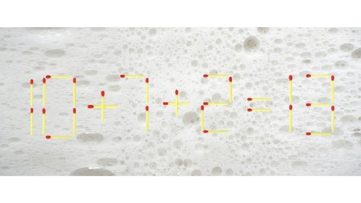 Многим приходится по душе решение логических головоломок. Вот одна из них на иллюстрации. В равенстве «10+7+2=13» намеренно допущена ошибка. Исправьте запись, переместив всего одну спичку.