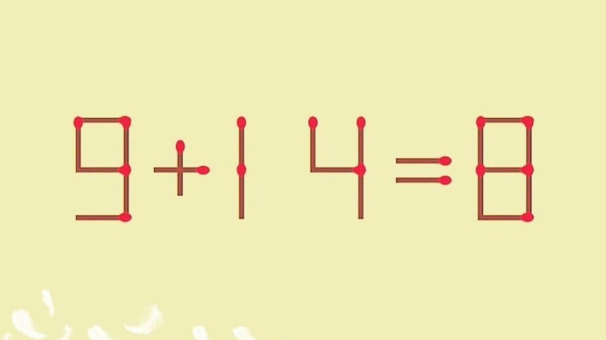 Чтобы равенство 9 + 14 = 8 стало верным, нужно взять одну спичку с цифры 8 и использовать ее, чтобы поставить минус между 1 и 4.