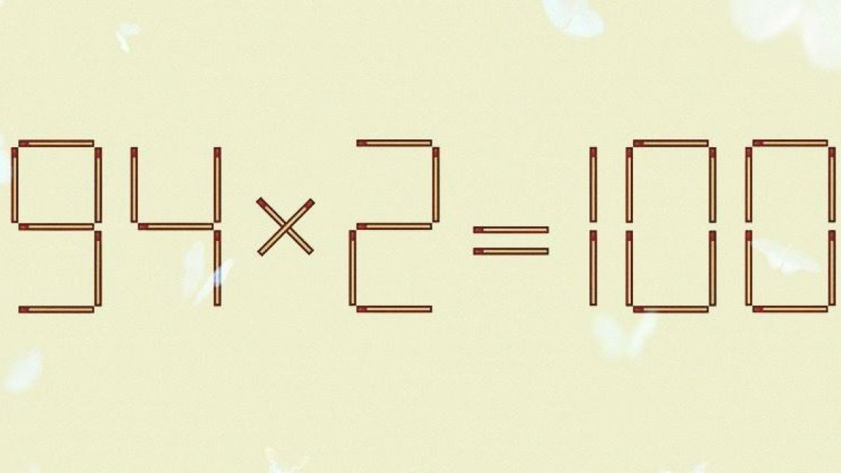 Внимательно вглядитесь в картинку. На ней есть уравнение с ошибкой: 94×2=100. Вам необходимо за 15 секунд найти верное решение, переставив только 1 спичку.