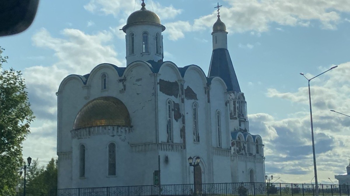 В Мурманске разрушили фасад храма Спас на Водах для проведения экспертизы. Фотографии здания с облупившейся штукатуркой опубликовал сайт «КП»-Мурманск».
