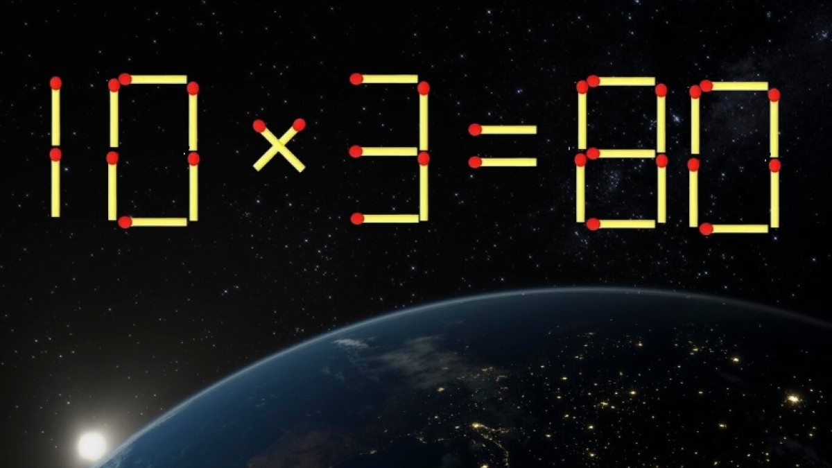 На иллюстрации представлена спичечная загадка. В равенство «10×3=80» закралась ошибка, которую исправит перестановка всего одной спички. Найдите верное решение.