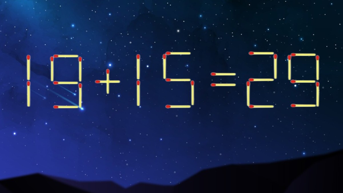Равенство «19+15=29» содержит ошибку. Необходимо переместить всего один элемент в этой записи, чтобы пример стал верным. Проявите творческое мышление.