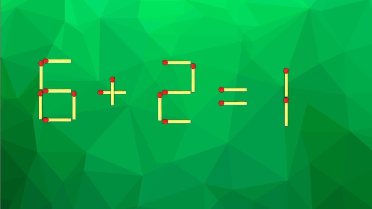 Представляем вашему вниманию равенство «6+2=1», показанное на рисунке. Как видите, в примере содержится ошибка, придется переместить один элемент, чтобы исправить ситуацию.