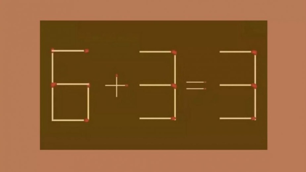 Для тугодумов есть подсказка. Надо поставить спичку так, чтобы получилось равенство 6+3= 9.