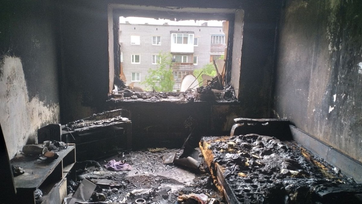 Огонь уничтожил мебель и вещи внутри квартиры, закоптились стены и вещ домашнего обихода.