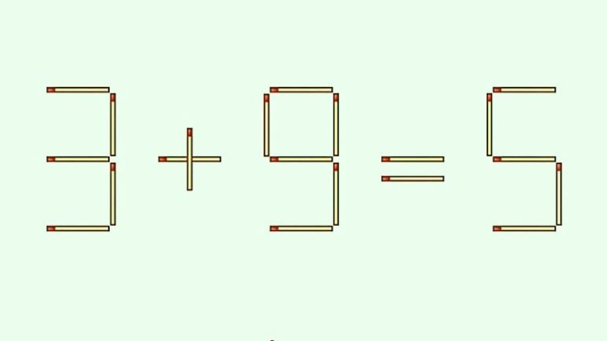 Посмотрите на картинку. В равенстве 3+9=5 есть ошибка. Надо очень быстро переставить одну спичку на другое место, чтобы уравнение стало верным.