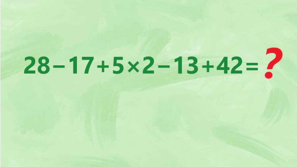 Для взрослых выполнить такие задания оказывается не так и просто, по сравнению со школьниками. Задание 28−17+5×2−13+42 вы видите на иллюстрации.