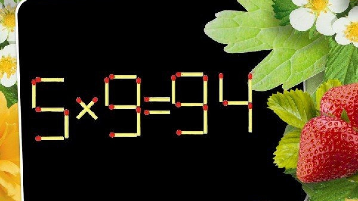 На иллюстрации показан пример «5×9=94», в который закралась ошибка. Переставим один элемент в записи, чтобы равенство стало верным.