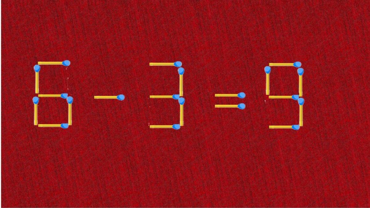 Прямо сейчас у вас есть возможность испытать свой интеллект в решении нашей головоломки. На иллюстрации показан пример «6-3=9», ошибку в записи необходимо исправить перемещением всего одной спички.