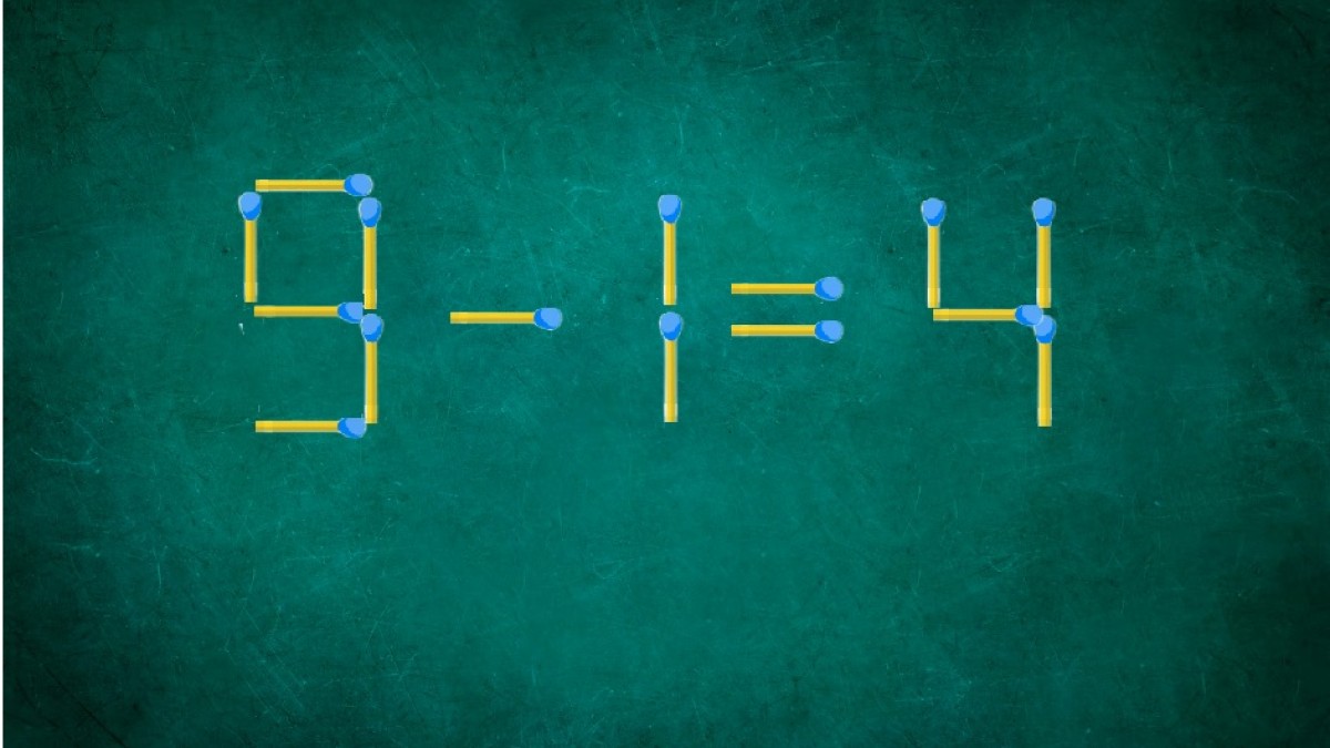 Представляем вашему вниманию загадку на перестановку. Пример из спичек «9-1=4» составлен с ошибкой. Переместите одну деталь, чтобы равенство стало верным.