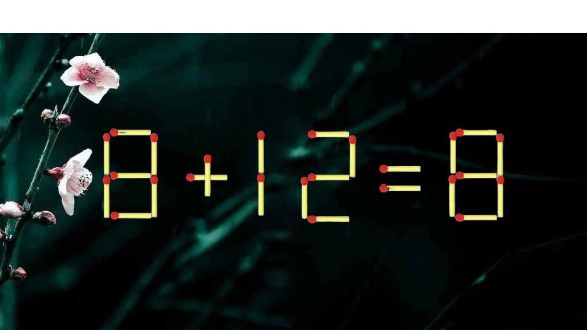 Пример «8+12=8» намеренно составлен с ошибкой. Равенство поможет сделать верным перемещение всего одной спички. Остальные элементы убирать или ломать не разрешено.