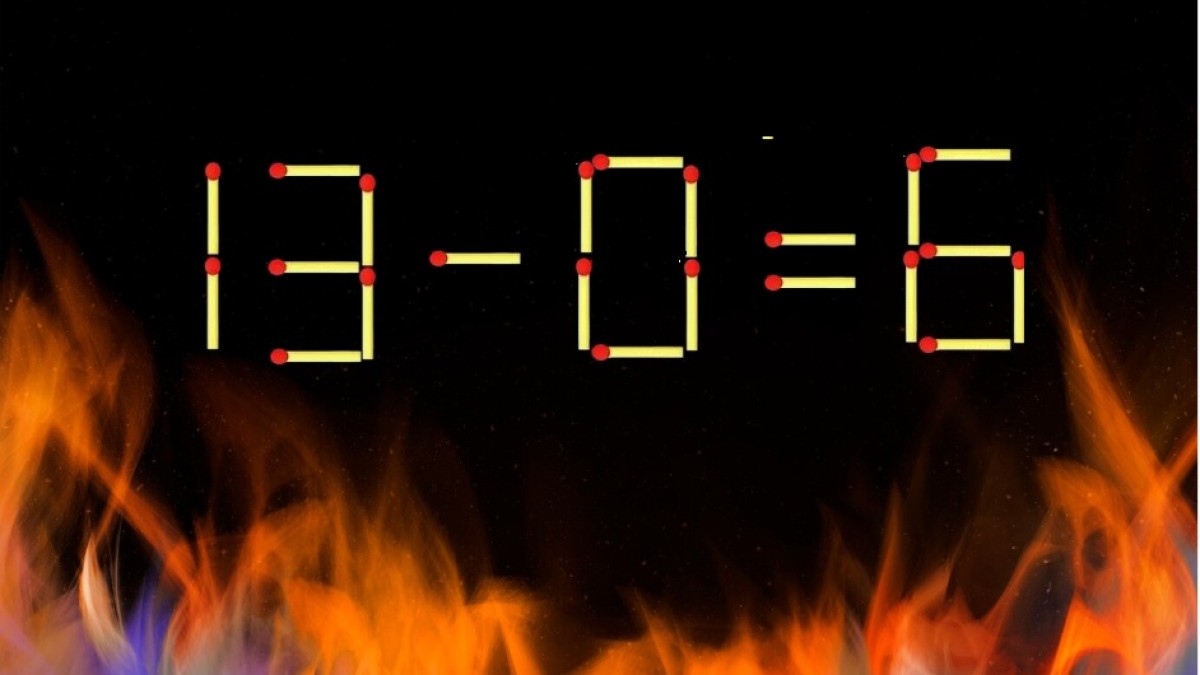 Представляем вашему вниманию загадку на перестановку. На иллюстрации дано равенство «13-0=6», в которое закралась ошибка. Переместите одну спичку, чтобы исправить ситуацию к лучшему.
