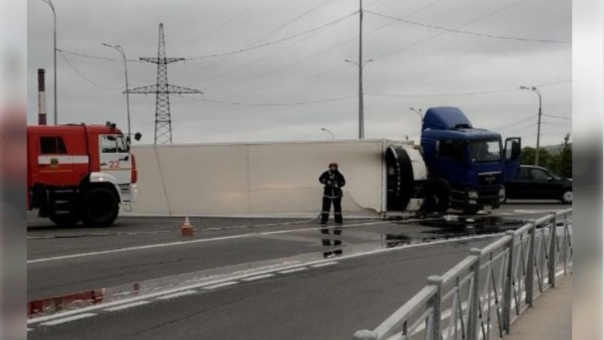 На 1384 км дороги Р-21 «Кола» перевернулась фура. Подробнее о происшествии рассказали в управлении по ГОЧС и ПБ Мурманской области.