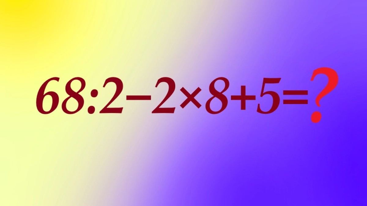 Вот задание на проверку вашего внимания и умения концентрироваться, посмотрите на иллюстрацию. Пример для устного счета 68:2−2×8+5 ждет решения.