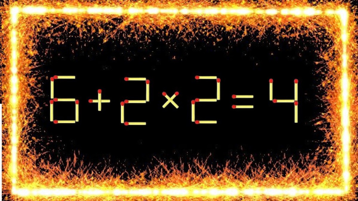 В вашем распоряжении пример «6+2×2=4», который содержит ошибку. Перемещение всего одной спички исправит ситуацию, вам предстоит найти верный способ.
