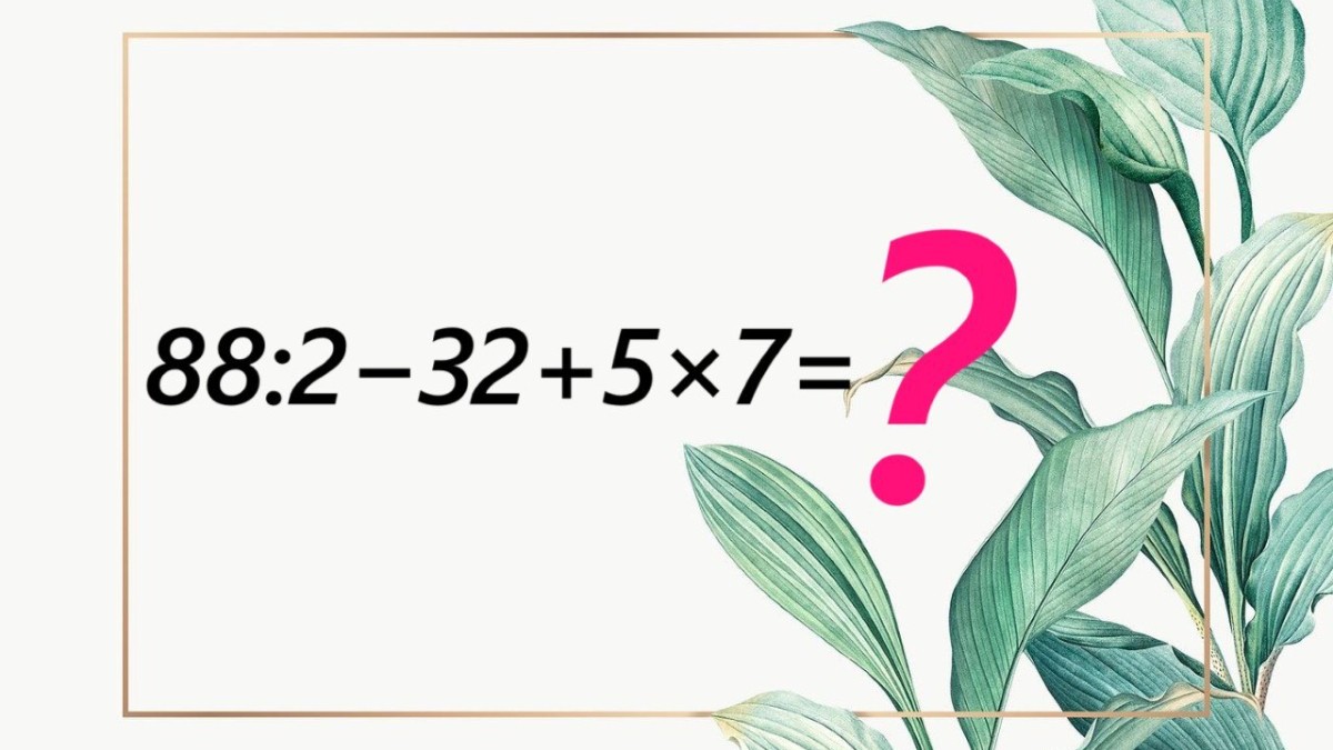 В первую очередь вам предстоит выполнить деление 88:2=44 и умножение 5×7=35. Действий осталось гораздо меньше, вычитаем 44-32=12 и складываем 12+35=47. До верного ответа добрались самые терпеливые личности.