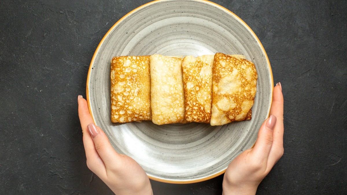 Можно уложить начинку в блины любым удобным способом.