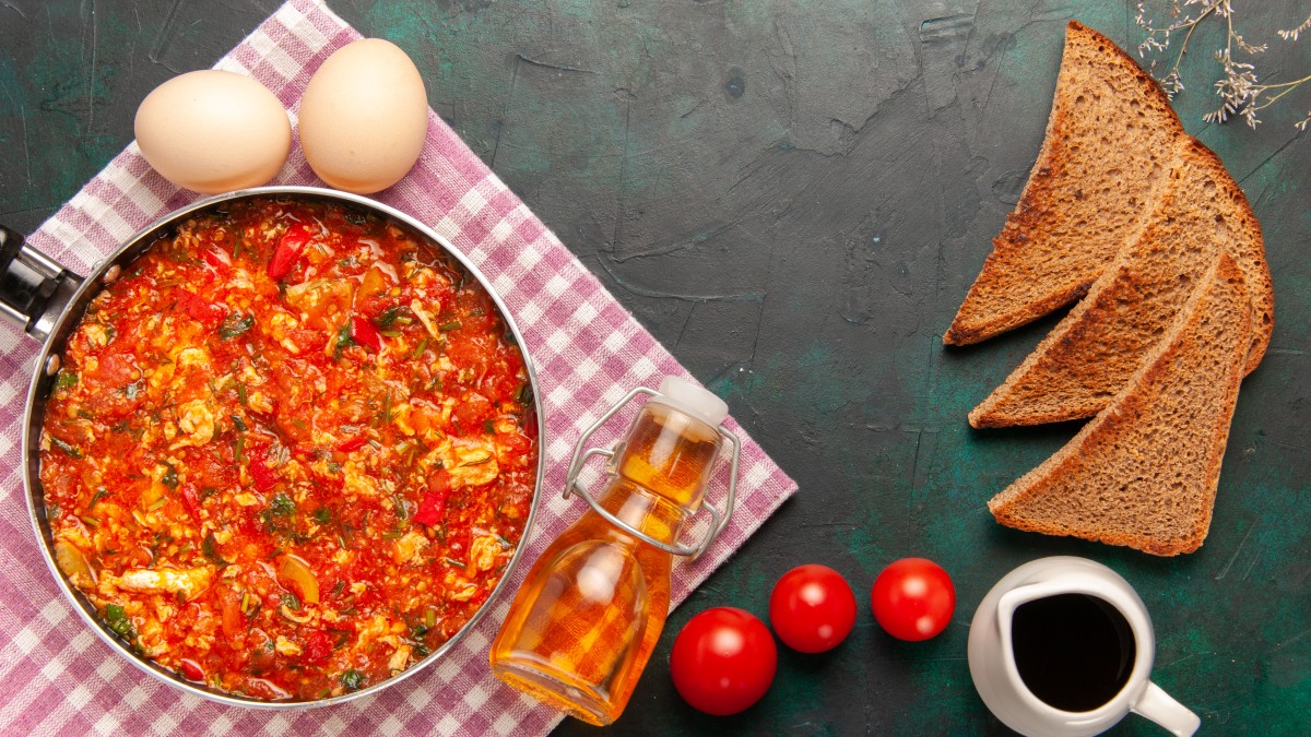 На сковородке сначала тушат помидоры с чесноком 2 минуты. Туда же добавляют морковку и специи. Через 3 минуты кладут кабачки.