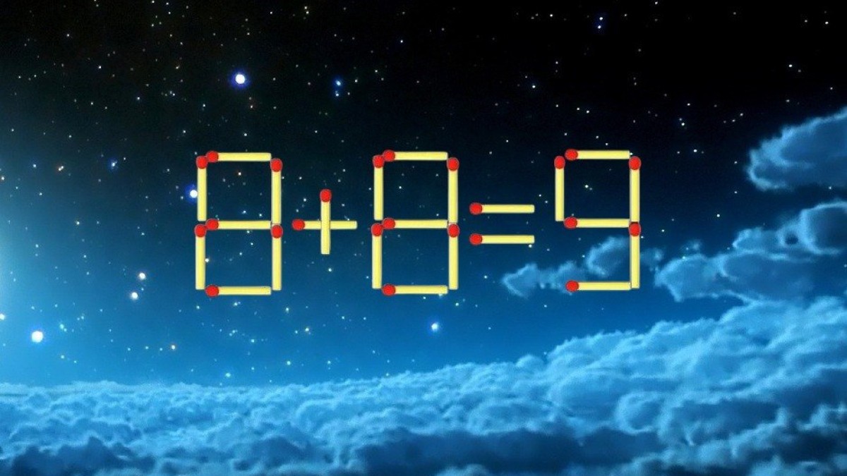 На иллюстрации показано равенство «8+8=9», пример составлен из спичек. В запись закралась ошибка, исправить ситуацию поможет перемещение одной спички. Правила строгие, остальные элементы ломать или убирать нельзя.