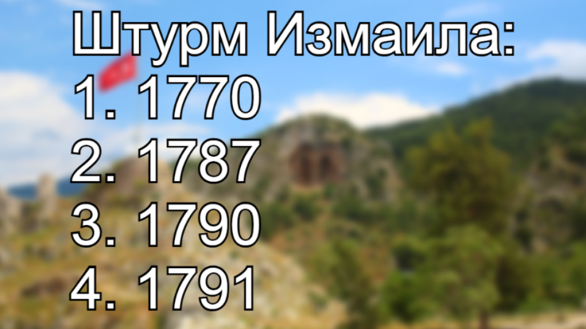 1770 год — это время другой Русско-турецкой войны, и хотя в нём были важные победы (например, Чесменское сражение), до Измаила тогда дело не дошло.