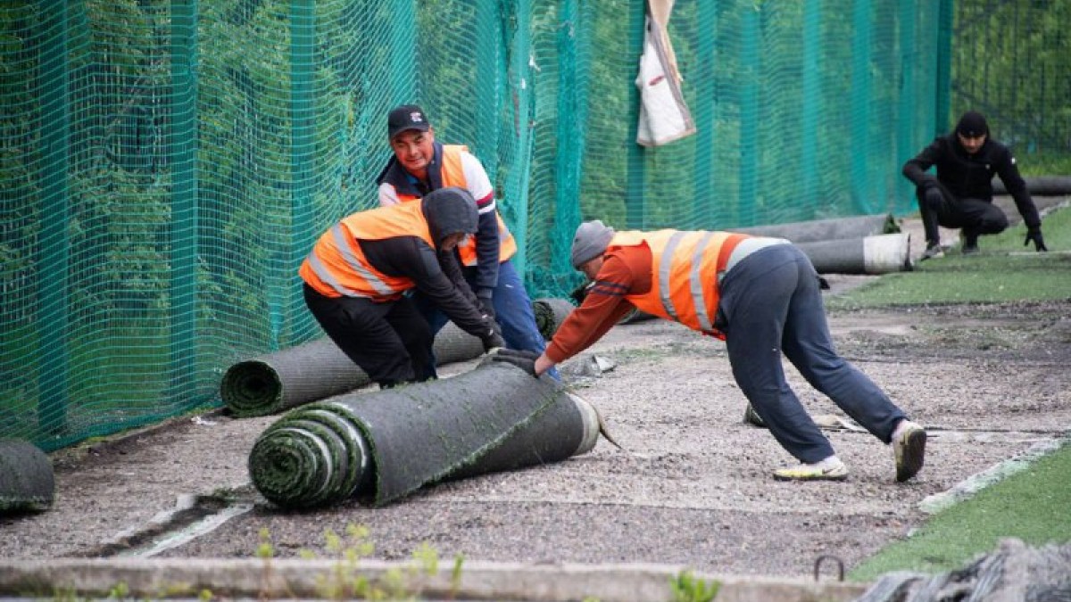«Сейчас работы в самом разгаре. Демонтировано устаревшее покрытие футбольного поля, подрядчик приступает к устройству искусственного газона. Установлены новые конструкции на детской площадке, идет подготовка к укладке травмобезопасного покрытия.