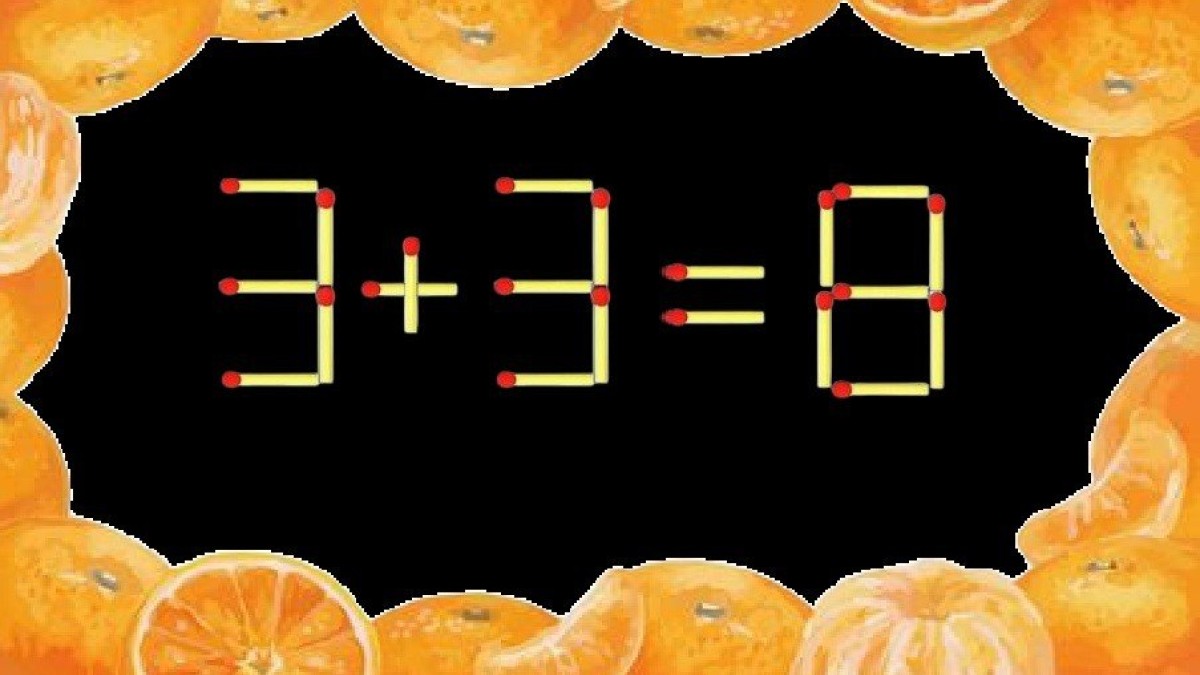 Взгляните на иллюстрацию, в равенстве «3+3=8» допущена ошибку. Необходимо переместить всего одну спичку в этой запись, чтобы пример решался верно. Нужную стратегию будет непросто выбрать, подключите пространственное мышление.