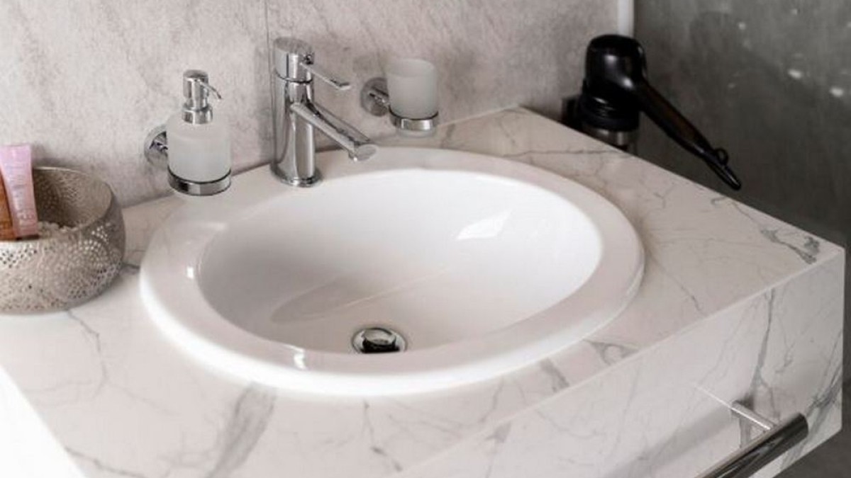 Накладная раковина (на столешнице). Плюсы — эстетический внешний, доступная цена, возможность ставить любую раковину. Минусы — в местах стыка раковины и столешницы образуется грязь и вода, более тщательный уход, важно качество материала.