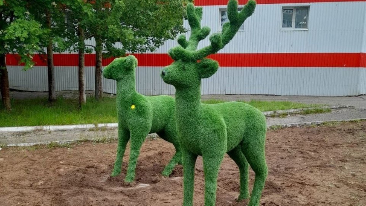 Установленные на Гвардейском проспекте в Никеле (Мурманская область) топиарные фигуры оленей в поселке предлагают защитить от желающих потрогать и посидеть. Дискуссия развернулась под сообщением с фото вытоптанного газона вокруг арт-объекта в паблике Никель [Ni].