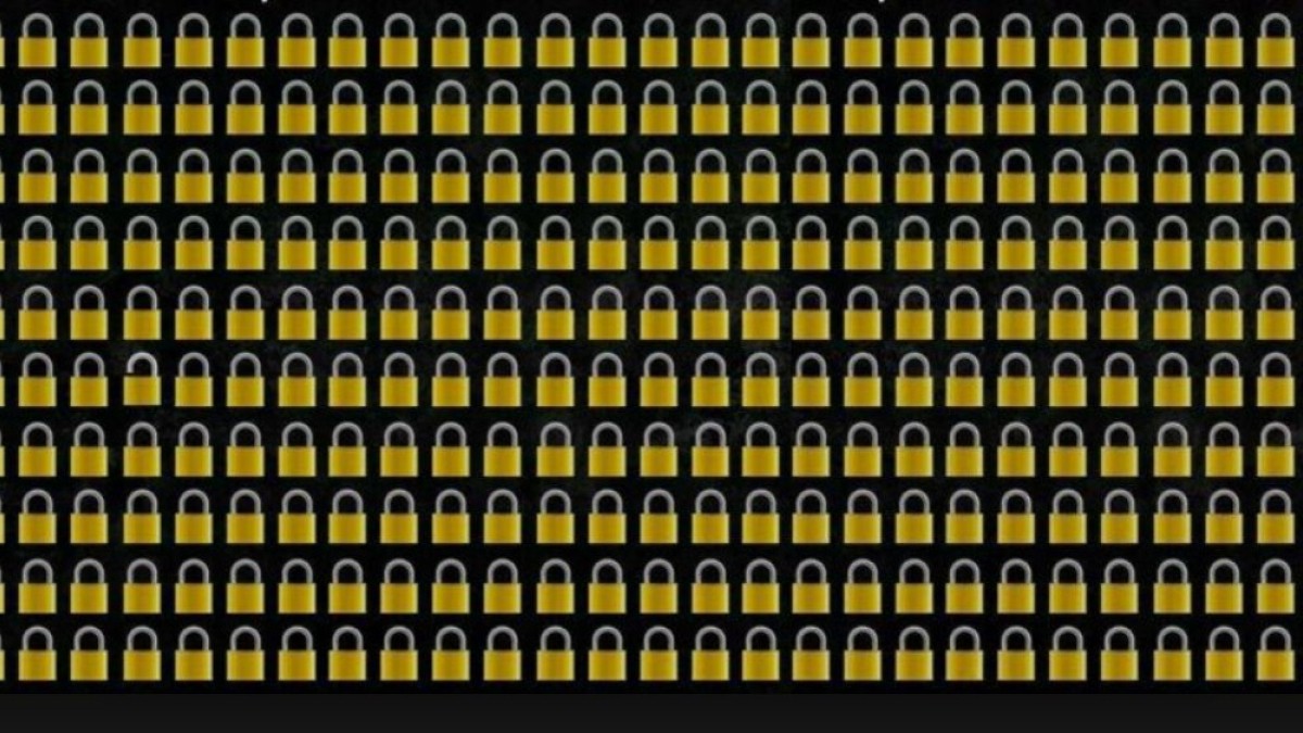 Для тех, кому не удалось самостоятельно найти ответ, есть подсказка. Замок, который отличается от остальных, находится в 5 ряду снизу и 5 столбце слева.