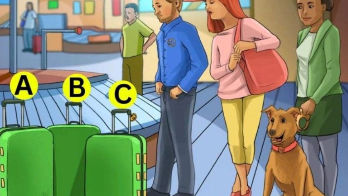 На картинке изображены путешественники с 3 зелеными чемоданами. Необходимо отгадать, кому принадлежат чемоданы.
