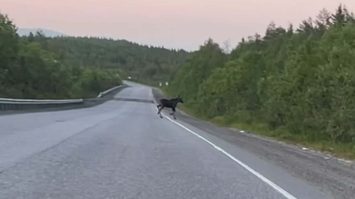 На дороге Апатиты — Кировск чуть не произошло ДТП с участием крупного лося. Видео с животным-нарушителем водитель опубликовал в telegram-канале «ХибИнформБюро».