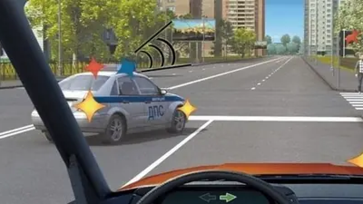 В первую очередь надо пропустить автомобиль с включенными проблесковым маячком и сиреной. У них всегда преимущество, даже если для них горит красный.