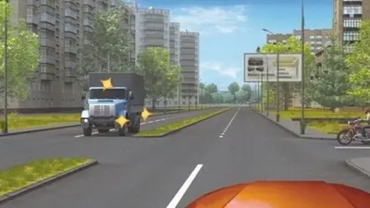 Жёлтый мигающий маячок на грузовике не даёт ему преимущества. Он не делает ТС специальным.