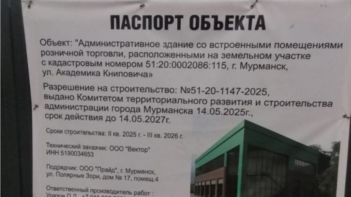 «Застройщиком является ООО „Реал Эстейт Заполярье“. Здесь планируется возвести административное здание со встроенными помещениями розничной торговли. Разрешение на строительство выдано до 14 мая 2027 года», — сообщили «Би-Порту» в администрации Мурманска.
