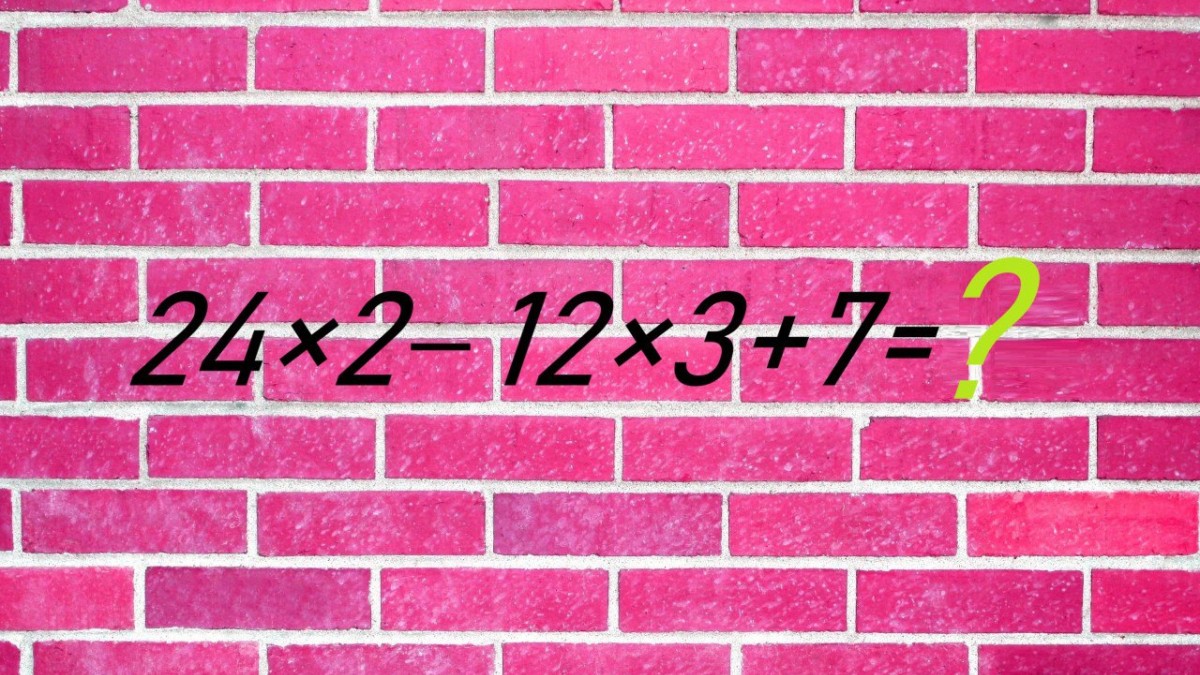 Взгляните на рисунок, представляем вашему вниманию пример для устного счета. Вычислите 24×2−12×3+7 в сжатые сроки, а калькулятором пользоваться запрещено.