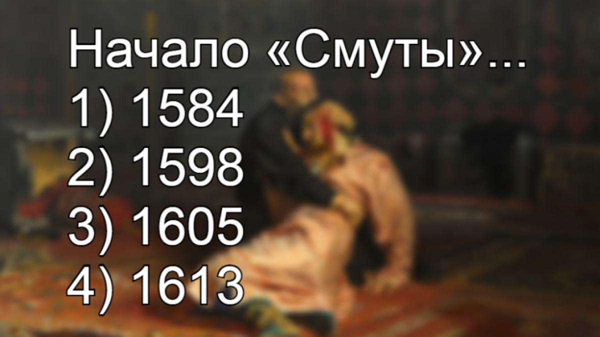 1584 — смерть Ивана IV Грозного. Его сын Фёдор стал царём, но пока власть ещё держалась. Признаки надвигающейся Смуты были, но сам период начнётся скоро, после смерти наследника.