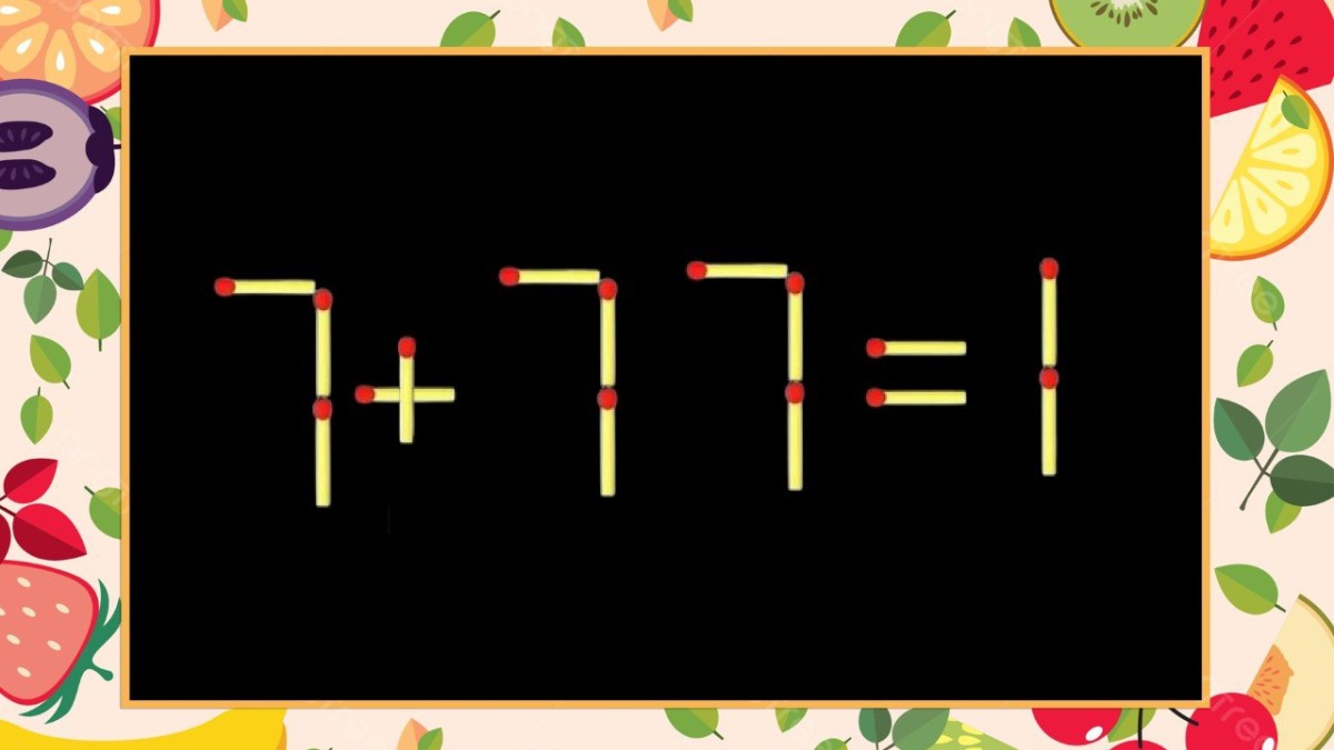 Пришло время вам проверить свои возможности. Спичечная головоломка «7+77=1» показана на иллюстрации. В равенство закралась ошибка. Переместите всего один элемент, чтобы исправить запись.