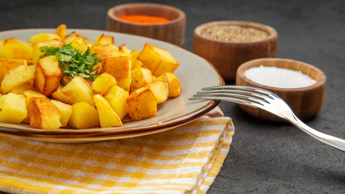 Соль добавляется в самом конце приготовления — это улучшит вкус блюда и не даст появиться лишней влаге, которая превратит жареную картошку в тушёную. Можно использовать специи и травы — например, добавить готовую приправу для жареного картофеля.