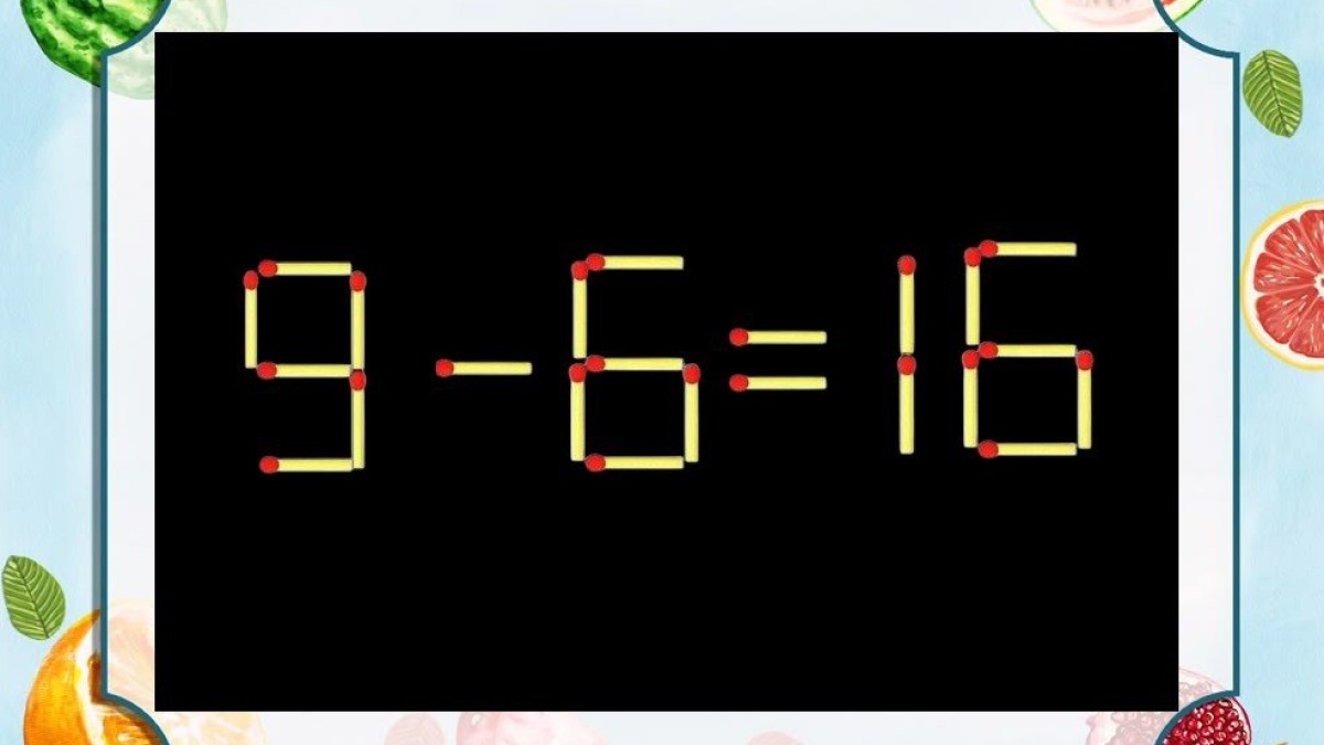 Взгляните на иллюстрацию, в примере «9-6=16» явно допущена ошибка. Необходимо исправить запись, передвинув всего один элемент в равенстве. Среди многообразия вариантов найти нужный с первого раза — непросто.
