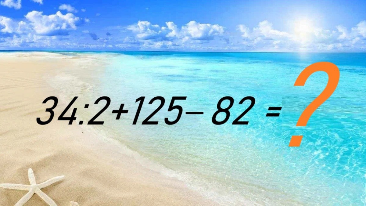 На иллюстрации показан пример для устного счета, задание ждет своего победителя уже давно. Вычислите 34:2+125−82 в уме, калькулятор не понадобится — всего лишь знания таблицы умножения.