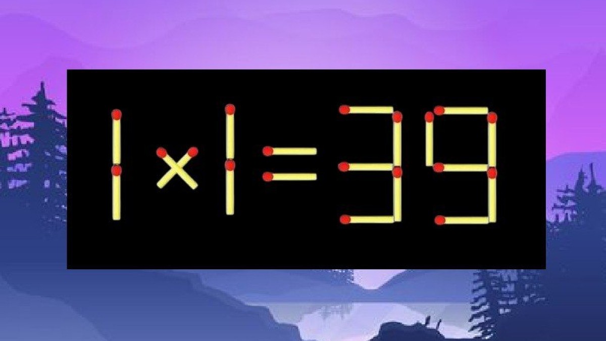 На иллюстрации показан пример «1×1=39», но решение его ошибочно. Исправить равенство поможет перемещение одной спички, осталось только найти эту виновницу неприятностей.