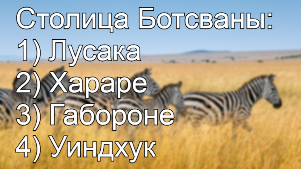 Хараре — ещё одна Африканская столица и принадлежит стране Зимбабве. Город славится своими парками, садами и достаточно высоким уровнем урбанизации по африканским меркам. Здесь базируются многие международные компании, а также есть популярный рынок Мбаре — настоящий лабиринт прилавков с местными товарами. В городе часто проходят фестивали, а местное искусство считается одним из самых выразительных на континенте. Но это не столица Ботсваны.
