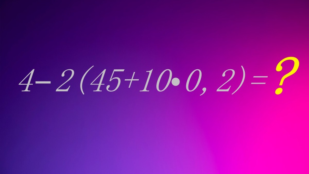 Представляем вашему вниманию хитрое задание для устного счета. На иллюстрации показан пример 4−2(45+10•0,2), который необходимо выполнить без помощи калькулятора в сжатые сроки. Если хотите проверить свой мозг, скорее принимайтесь за дело.