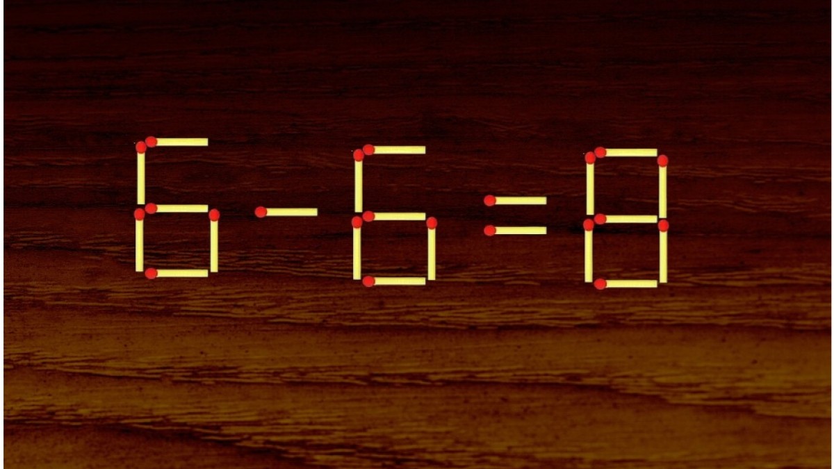 Представляем вашему вниманию спичечную головоломку. Взгляните на иллюстрацию, вас ждет запись «6-6=8». В равенстве явно допущена ошибка, исправьте ее при помощи перестановки всего одной спички.