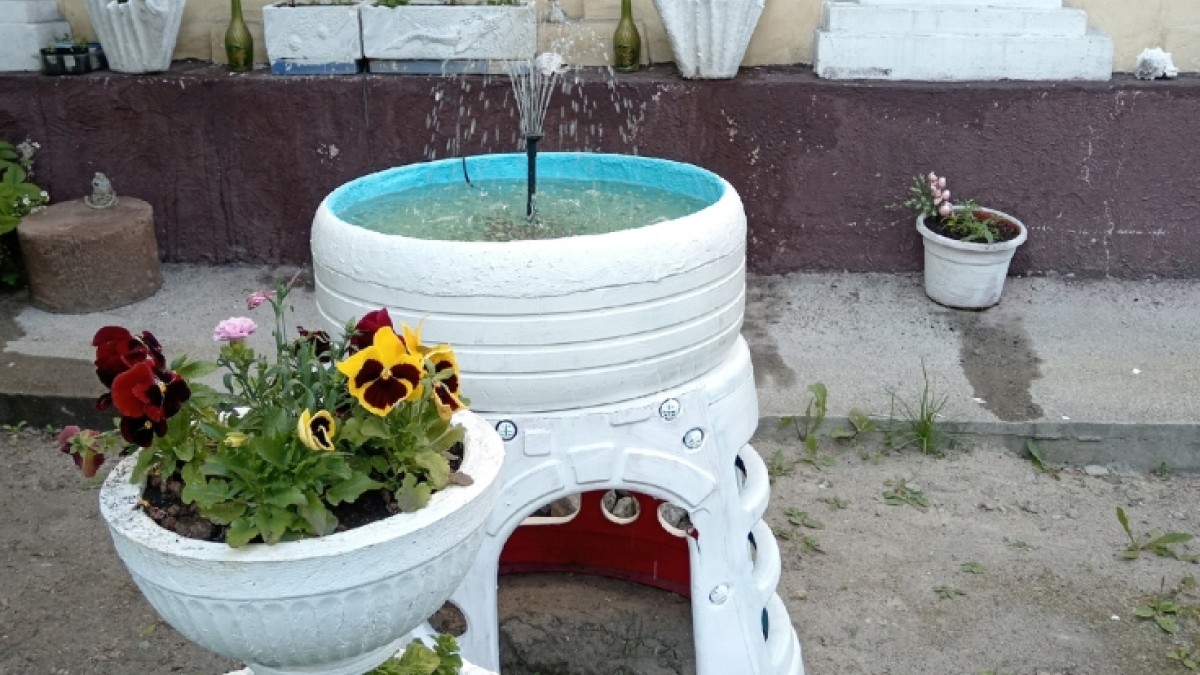 Предположительно, данное творение современного искусства радует глаз жителей Арктического переулка. Фонтан собран из старой детали от детского домика и покрышки, а после для эстетического удовольствия смотрящих выкрашен в белый цвет.