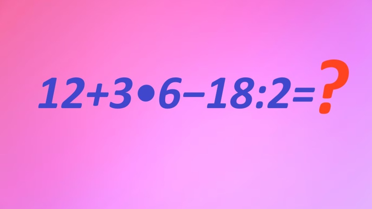 Посмотрите на изображение, вот пример на проверку ваших талантов. Высчитать 12+3•6−18:2 необходимо в уме, калькулятором не пользуемся. Вы почувствуете себя настоящим отличником, если пройдете эту проверку без промахов.