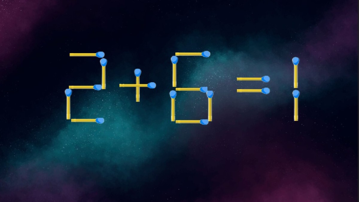 Предлагаем вашему вниманию равенство «2+6=1», взгляните на рисунок. В примере намеренно допущена ошибка, но вы сможете исправить ситуацию. Переставьте всего одну спичку, чтобы запись не нарушала законы арифметики.