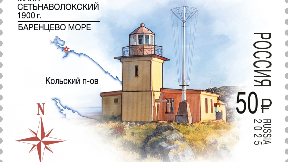 Сетьнаволокский маяк, расположенный в Мурманской области, теперь изображен на марке почты России. Событие посвящено 125-летию сооружения, а погасить марку специальным штемпелем можно в Мурманске, Москве и Санкт-Петербурге. Московский дизайнер Мария Бодрова показала знаковый объект региона на фоне карты Кольского полуострова и розы ветров.