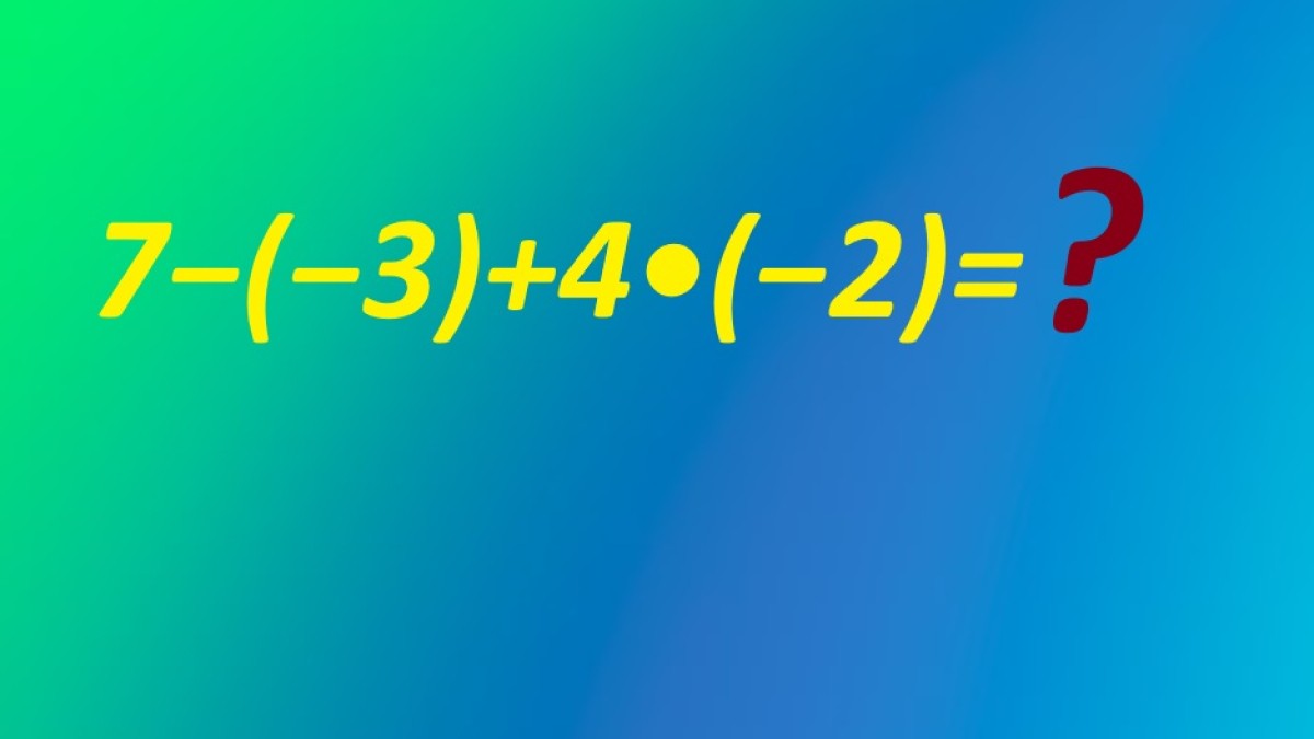 Посмотрите на иллюстрацию, пример для устного счета ждет вашего внимания. Давайте вычислим 7−(−3)+4•(−2) в сжатые сроки, нужно только припомнить правило открытия скобок. В средней школе вы в этом точно практиковались.