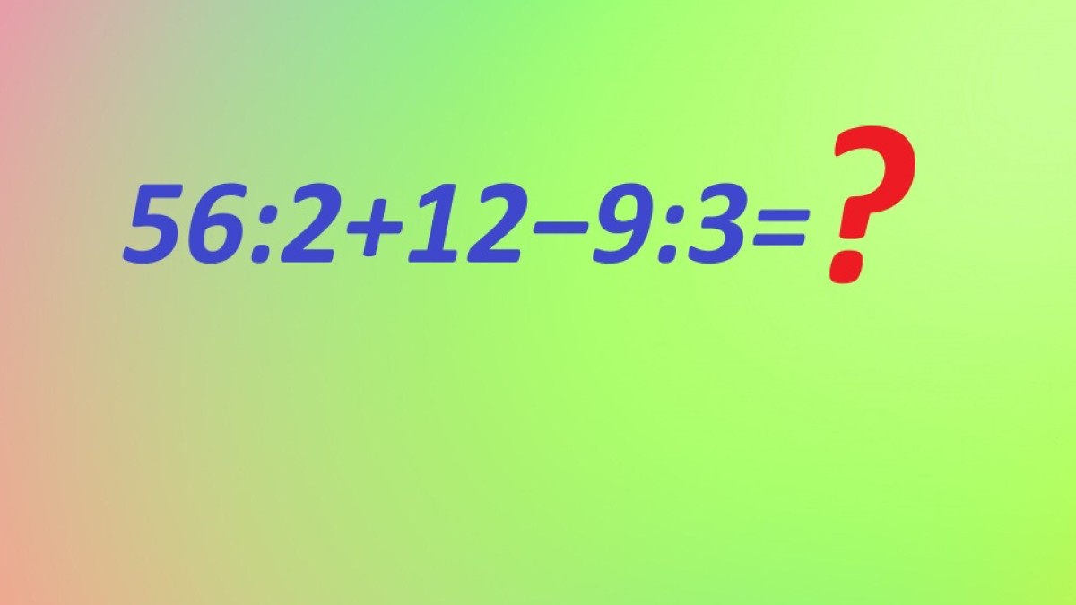 Представляем вашему вниманию задание для устного счета, взгляните на иллюстрацию. Высчитать 56:2+12−9:3 придется без калькулятора, ведь это пример для начальной школы. Проверять будем уже через 10 секунд, поторопитесь.